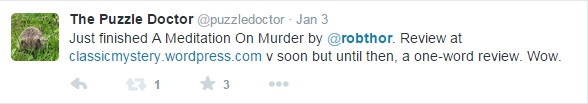 […] – but series creator Robert Thorogood has kept him around with this series of books. The first, A Meditation On Murder, is the most viewed review that I’ve written this year (although it was posted on January 5th) […]