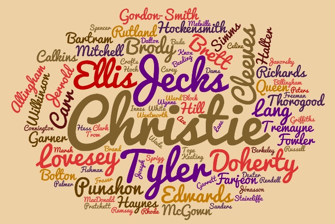 Dame Agatha walks off with this one, with Paul Doherty slipping down the rankings for the obvious reason that I’ve read most of his books now! Strong new showing from Len Tyler, basically because I read (almost) everything he’s written this year…