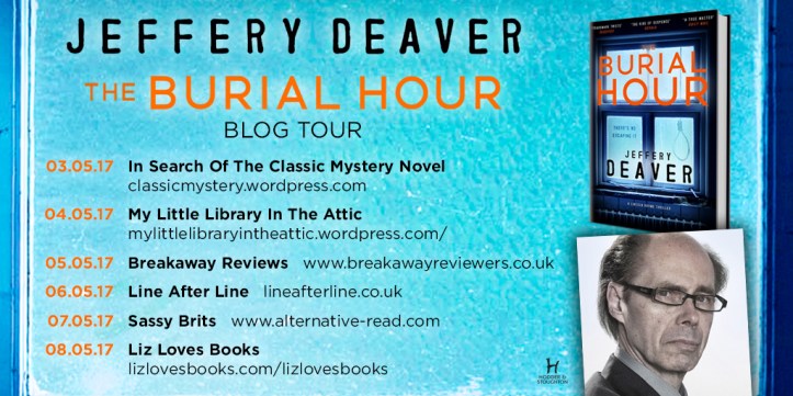 Iāve enjoyed Jeffrey Deaver for a long time. I picked up The Bone Collector once upon a time in an airport ā I know that because itās the US edition ā and with that, and in particular, the second Lincoln Rhyme book, The Coffin Dancer, I was hooked. Heās written over thirty five novels, all of them twisty-turny thrillers, as well as a large collection of top notch short stories. So itās a real privilege to be asked to kick off the UK leg of the Blog Tour for The Burial Hour.