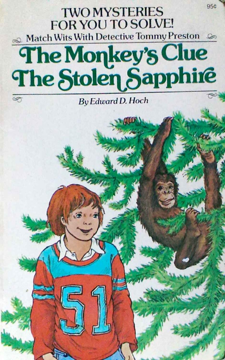 I picked up a copy of an Edward D Hoch rarity, a couple of short stories that he wrote for kids, The Monkey’s Clue & The Stolen Sapphire with the most bizarre cover. It features a boy and an ape (no, not a monkey) and the ape is the one that looks more human.