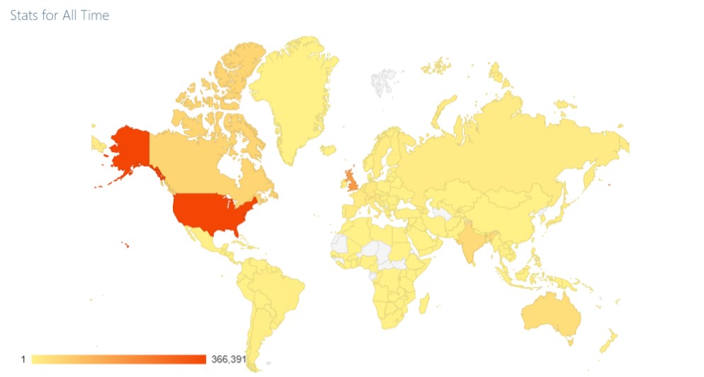 So, one of my targets for this year is to finally get a visit from Western Sahara, Mauritania, Equatorial Guinea, Gabon, Guinea, Niger, Chad, the Central African Republic, South Sudan, Dijbouti, Kosovo, Turkmenistan and Vanuatu. Oh, and North Korea. I know a lot of those places are warzones, but I can live in hope – Afghanistan has popped by six times…
