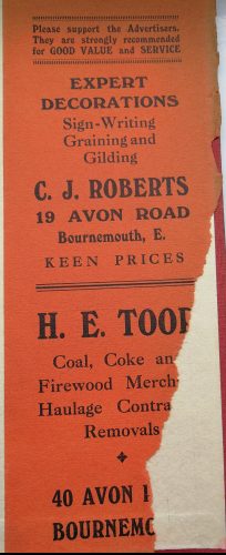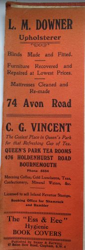 These are the front and back flaps of what I presume was a dust jacket but they seem awfully specific – notably all advertising businesses mostly in the same road in Bournemouth. Two of the addresses still exist, but with no sign of the mentioned business. But my question – what are these? They can’t be from the original dustjacket, surely. The book has a stamp from Richmond Park Library, in the same town, but also apparently defunct – the address no longer exists. So did the library commission these? The address of the printers in Clapham no longer exists either…