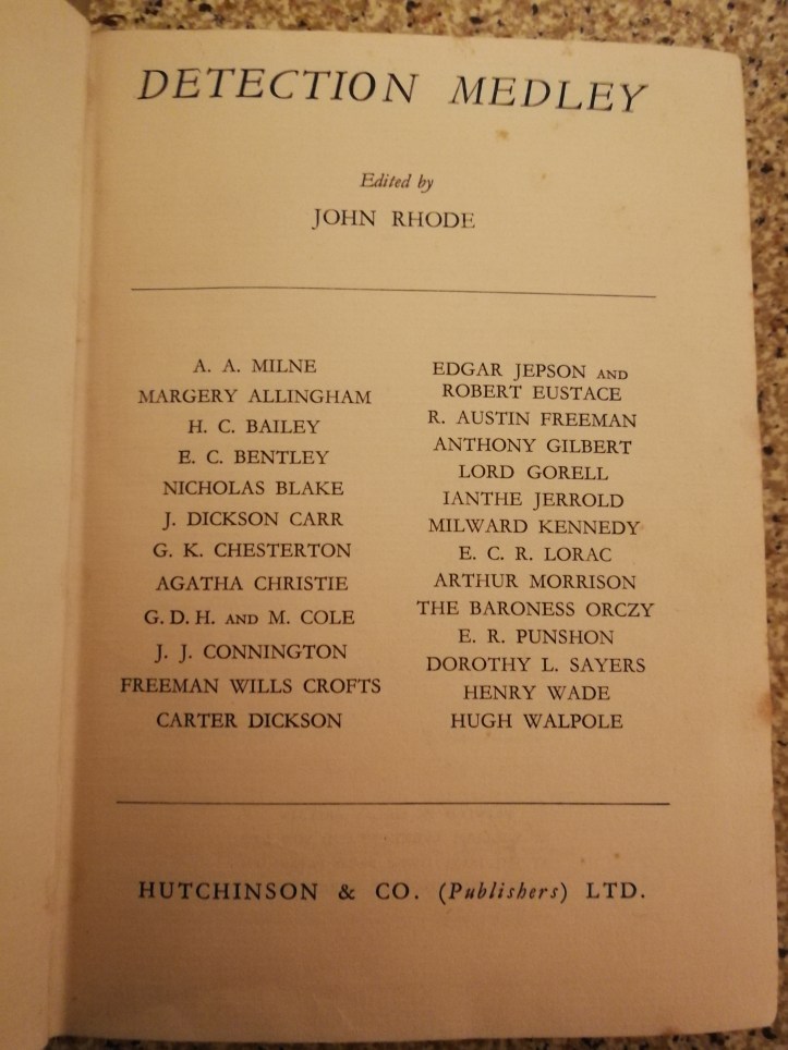 As you can see, that’s quite a line-up of talent contributing to this book – if you want to hear about Rhode’s tribulations in compiling it, then do take a look at Curtis Evans’ Masters Of The Humdrum Mystery, which also includes some potential other titles, suggested by Dorothy L Sayers – I won’t spoil any of them for you other than Detective Ditty-Bag. If only…