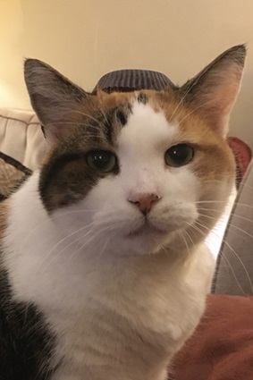 It’s been almost fourteen years and I’ve not come across a student who’s found me, even the few who know about my slightly more public sideline, and I’d like to keep it that way. Hence the lack of photos as well. Although you can have a photo of my cat Bella with a Reese’s Peanut Butter Cup wrapper on her head.