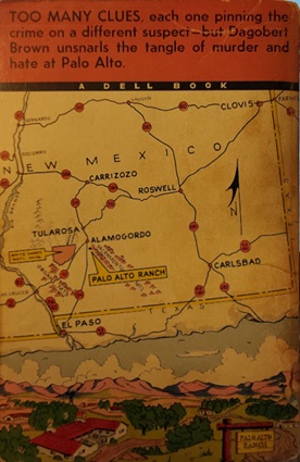 Dagobert and Jane Brown are in New Mexico, heading to Alamogordo, to drop in on Dagobert’s old friend – or so he claims – Miranda Ross, a colleague from the war. Initially unable to wangle an invitation to the Palo Alto ranch where Miranda and her family and cohorts reside – it seems Dagobert may have exaggerated their friendship – the invitation eventually arrives. But on the first evening, Miranda doesn’t appear. And the next morning, the Browns finally get to meet her – well, her body at least, due to the knife sticking into her.
